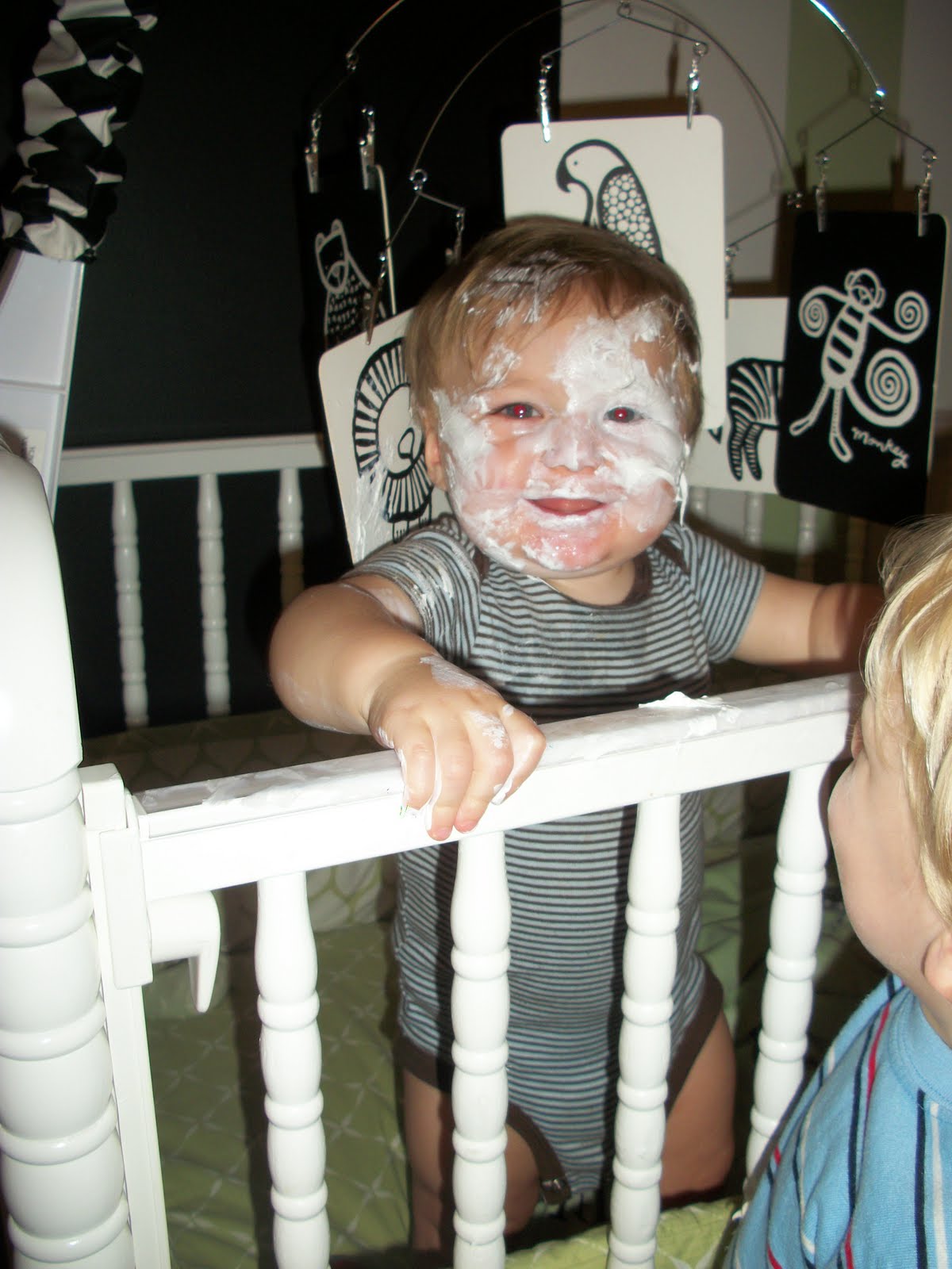 I called out, "Ellis what are you doing?" I got up, turned around and heard him say as he ran out of their room, "I paintin Thad!"